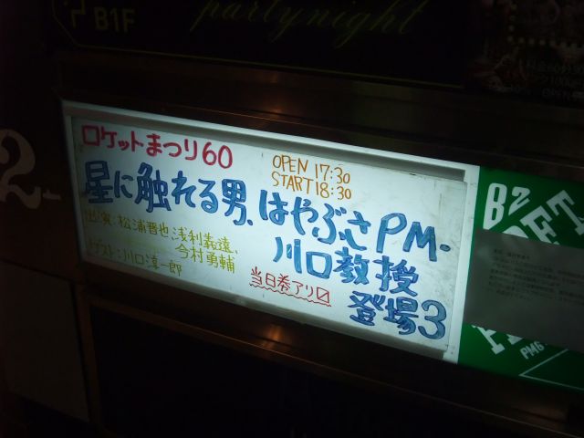 ちなみに過去のロケットまつりはこんな感じ。そーいえば、今回はチケットには「星に触れた男」とある。題名がちょっとだけ変わってた。そーいや、前回は60回で今回が61回だから1年ちょっとやってなかった、ということなのかな?