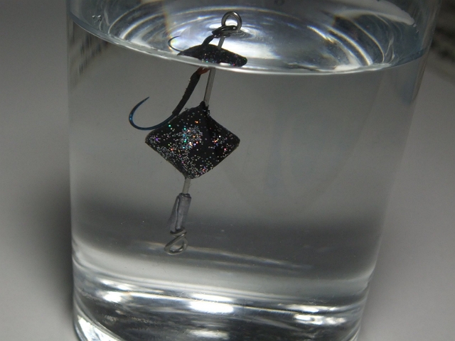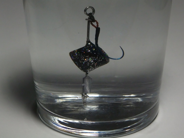 作った後に思いついたのですが、板錘の量を減らせば、トップルアーにすることもできます。ボディの上にアイが付いているのでバランスが難しいですが。