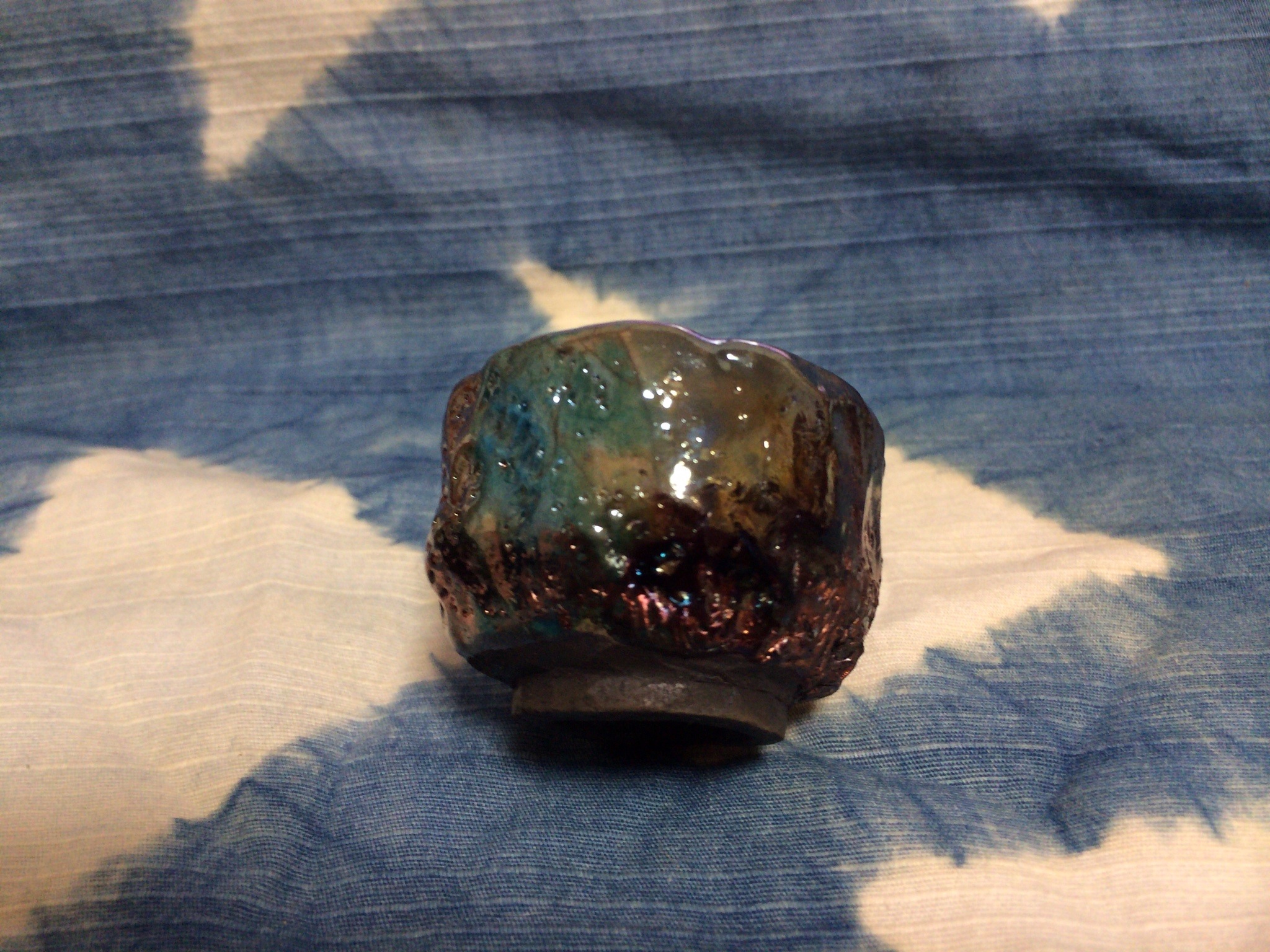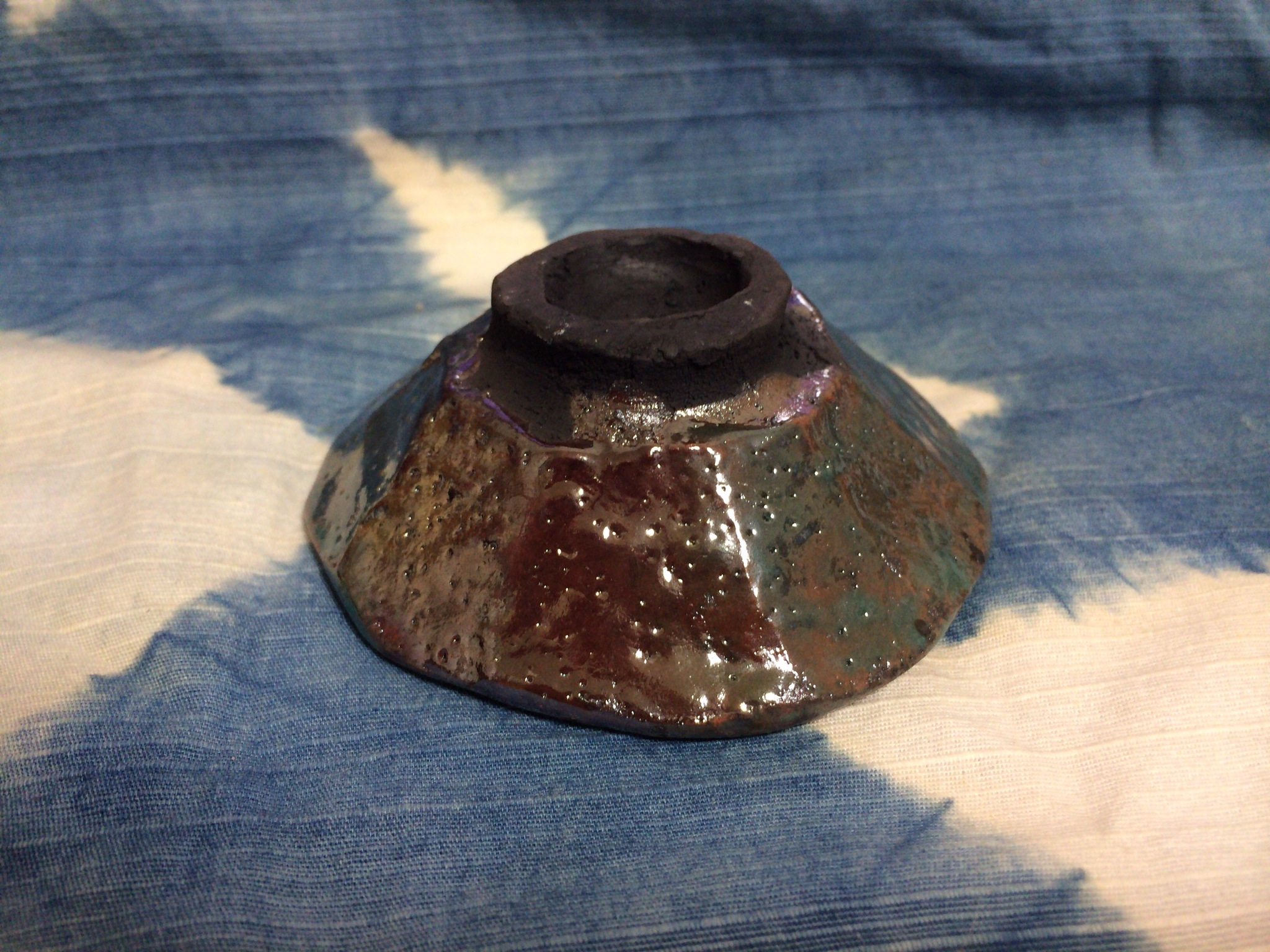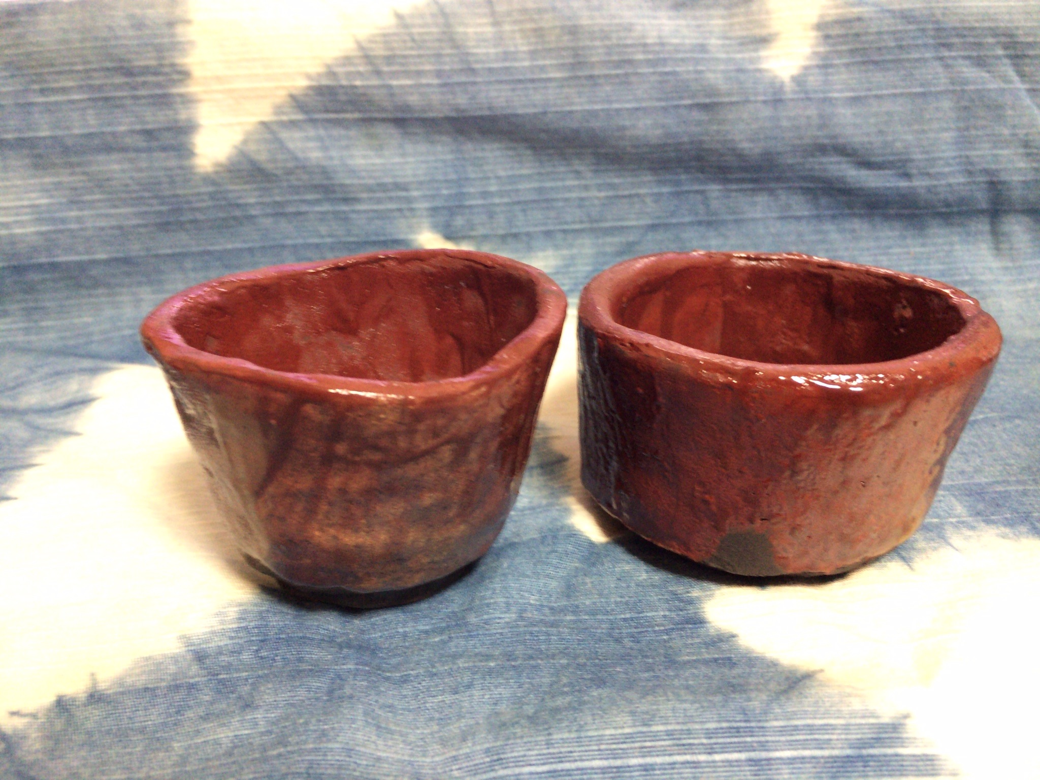 飴釉になるはず?であったが、黒っぽい赤に仕上がった。決して嫌いな色じゃないけど、器ではキツイので失敗。次回はもうちょっとベンガラを少なくしよう。