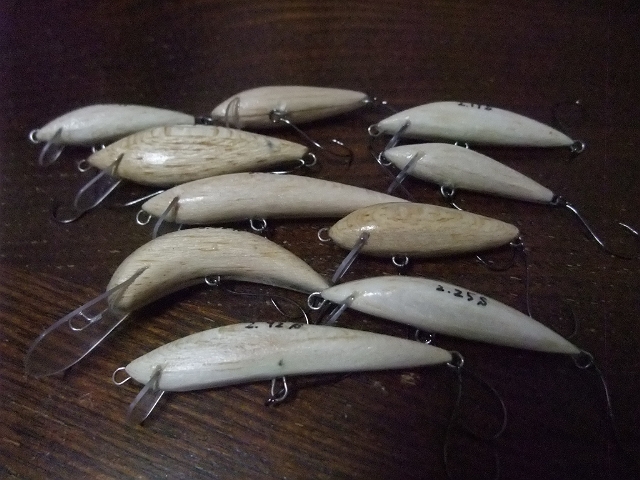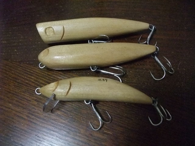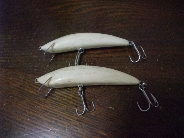 シーバス系バルサルアー2匹については、フローティングはOK。ブリブリ泳いでて良さそう。シンキングはどうも頭下がりで、泳がしているときは悪くないけれど、停めると頭からストーンと下がってしまう。これはもうちょっと考慮が必要かも。