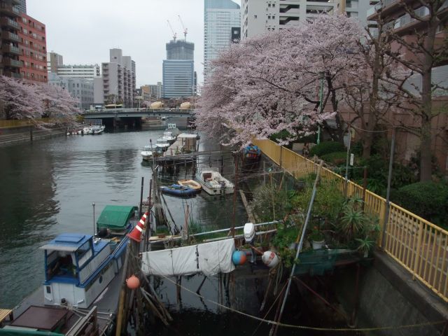 隅田川や運河の護岸には桜が多いのです。今年は1週間咲き続けて持ちが良い。去年は咲いてすぐに散ってしまったので、嬉しいです。あと数日咲いてくれてるんじゃないかな?