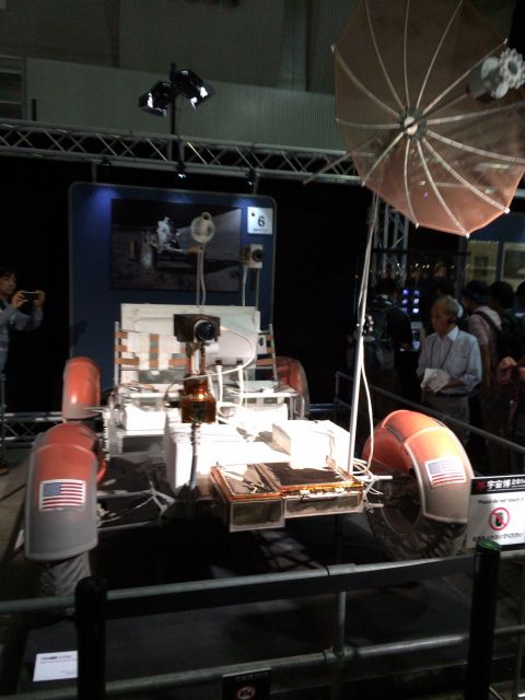 そうそう、JAXAブースでは海から引き揚げたロケットエンジンもあって、これがなかなかの実物感満載で迫力がありました。いま火星探査の真っ最中のキュリオシティもレプリカありましたよ。こいつもカッコイイ。