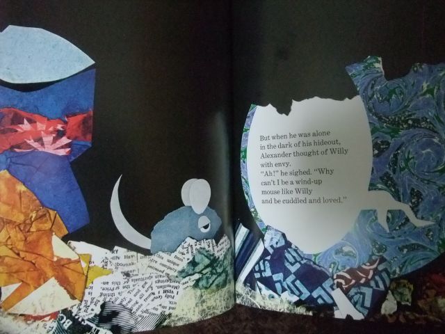 レオ・レオニは、いろいろな画法で絵を描いているのですが、そのなかでも私が気に入ったのが、コラージュという紙や布を張り付けて絵を作る技法。