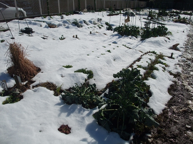 ブロッコリーもそれほど大きくなっていなかったので、今回は様子を伺っただけで帰ってきました。あぜ道が霜柱でドロドロで怖かった。