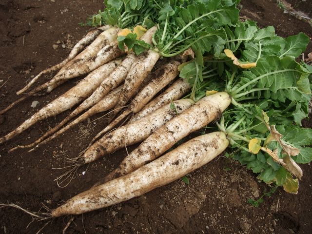 直径で50mmほど。ちょっと細いですけど、まっすぐに伸びてくれてます。深くまで耕した甲斐がありました。いままでで一番良い出来栄え。