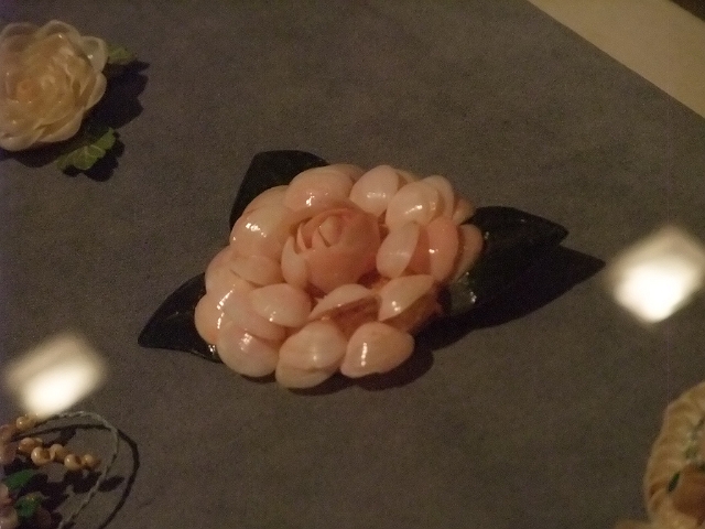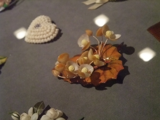 遠目に見れば華やかに見えますが、細かなところを見てみると、小さな小さな貝殻を組み合わせたもの。