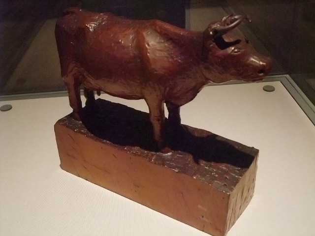 ですが、非常にリアルで力強い。背中のあたりの筋肉は張っています。きっとこれを作った方は牛について詳しい方だったに違いない。またひとつ木で削られているため、非常に手間も掛かったと思いますが、それでもこの牛を作りたい、という何かがあったんだと思います。