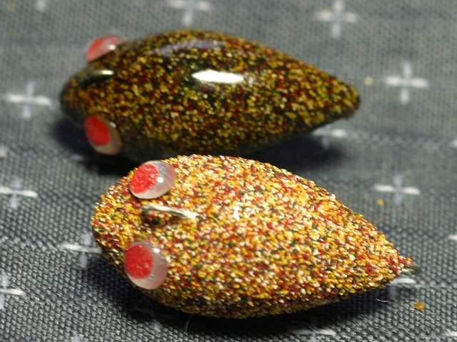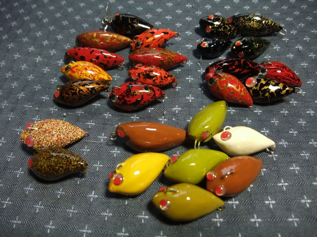 いくつか変わり塗りを試してみましたが、小さいルアーは変わり塗りの細かな模様がよく似合う気がします。