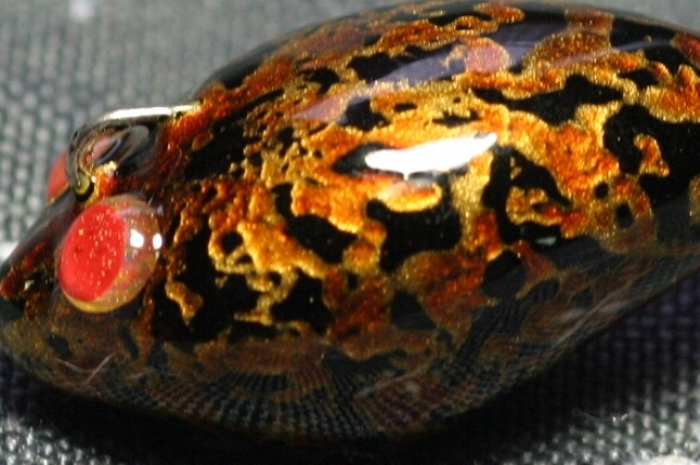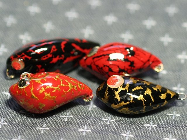 赤黄と黒金赤と橙黒金。なかなか面白いでしょ。こんな色が魚に効くとは思えないけれど、良いのです。私は塗っていて楽しいのですから。