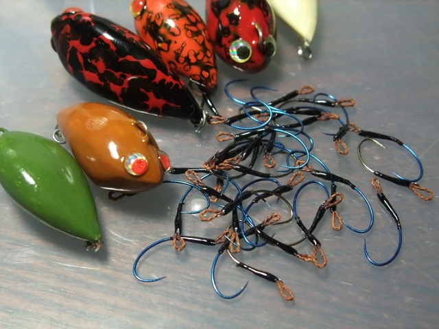で、ルアーは完成しているのですが、フックを付けていなかったので、その作業を始めたのですが、思ったよりも完成ルアーが多い。