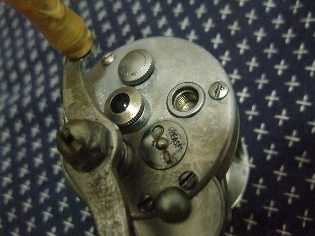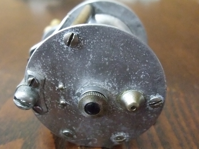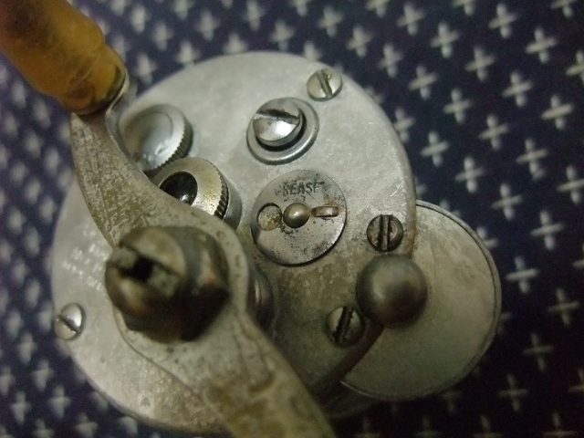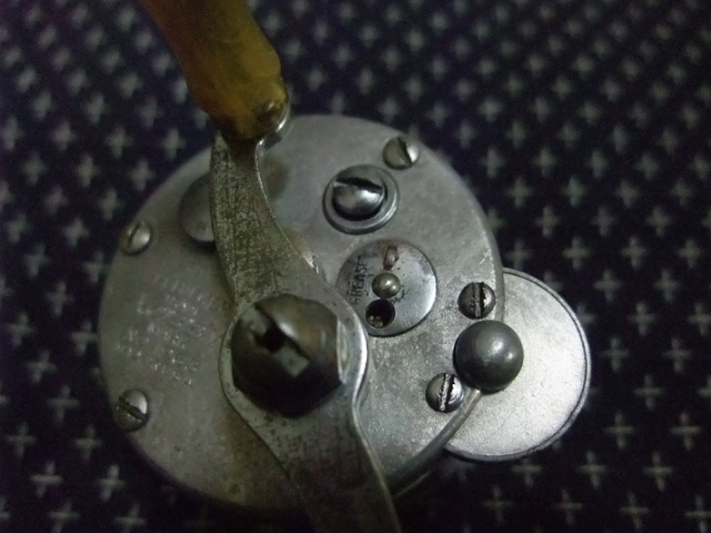このあたりにこのリール(NOBBY)の古さを感じます。プラスネジの歴史は1930年以降ということなのですが、それ以前ってことはないと思いますけど、どれくらい前のモノなのでしょうね。