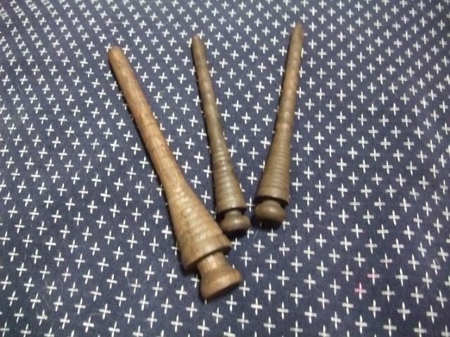 ちなみにコレ、足ツボマッサージ棒ではなく、織機の横糸を走らせるための糸巻き。どれくらい古いかわかりませんが、けっこう古いハズ。