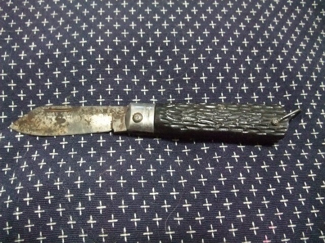 まあ、作りはシッカリしているし、刃の厚みもあるしグリップも握りやすい。刃も完全に錆びきっているわけでもないし、カタチも良いので手入れをして木工用のナイフとして生き返らせようかと思っています。