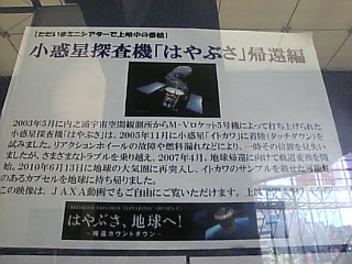 館内では『はやぶさ』の15分番組をやっており、これがいままで見たことのない映像もあって、15分間しっかり見入ってしまいました。