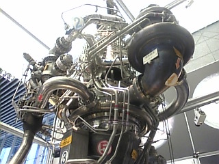 中央に鎮座しているエンジンは個人的にはけっこう好き。ここまでメカメカしいってのはあんまりないよね。車のエンジンだってかなわない。あるとしたら、飛行機のエンジンかな?