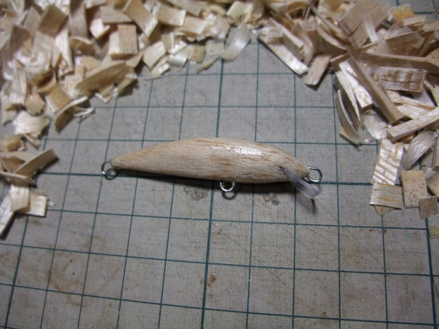 リップレスクランクはコレで行くのはキマリですが、ちょっと他のも作ってみようかと思ってミノーをひとつ削ってみました。管釣り用をイメージした細身な50mm。スイムテストではしっかり泳いでくれていますが、ちょっと沈下が速くて姿勢が頭下がりなのでウェイトを減らして位置をもうちょい後方にしていこうかと思っています。これも気が向いたらいくつか作ってみようかと思っています。マスよりもセイゴに良さそう?