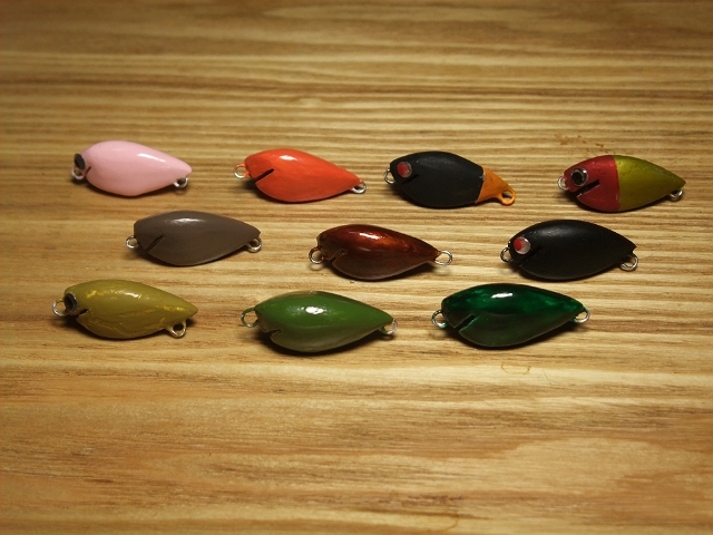 いざ管釣りカラーを塗ろうと思ってみても何色が良いのか思いつかないもので、管釣り用のカタログをネットで見ながら考えたりしていました。まだ塗っていないルアーがいくつかあるので、他にも思いついたら試してみようと思っています。