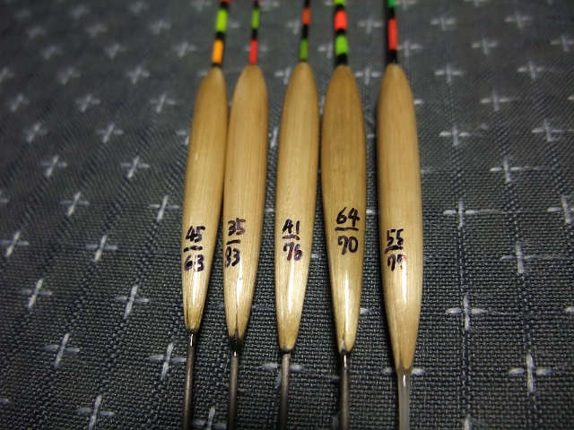 全く同じではないですが、同じ程度のオモリ負荷になっているので、トップや足の違いによる釣り方の違い、ウキの動静の違いを試しながら観察してみようと思っています。これで面白い結果がでれば次の自作ウキに生かす予定。