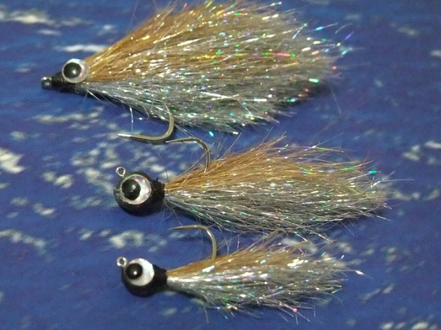 ただ、このインチキエンジェルも、シルエットと質感が気に入ったのでセイゴやメバルのためにジグヘッドに巻いたものも作ってみました。(写真の下ふたつ)
