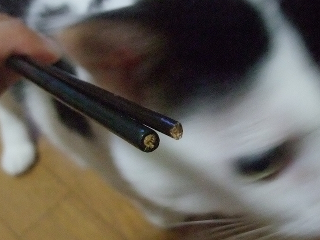 で、2本目の継部を傷つけずに、ドリルで10mmほど穴を開けて、楊枝を差し込んで瞬間接着剤で接着して・・・、ペンチで引き抜き!!