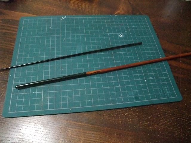 それと先日折れたヘラ竿、無事に継部から折れた部分を抜くことができましたが、部屋を探してみたらちょーどよい磯竿のカーボン製の穂先がありました。