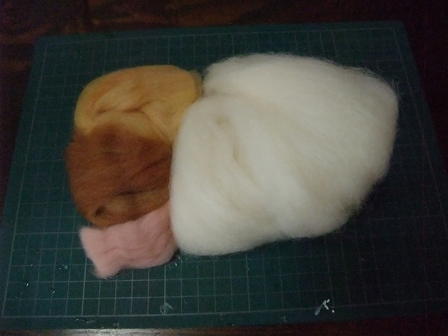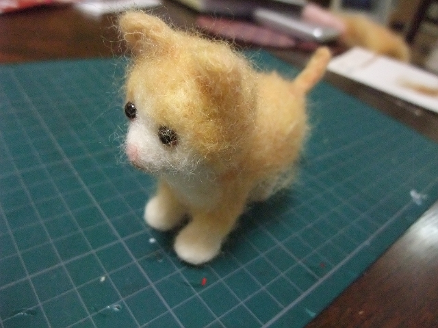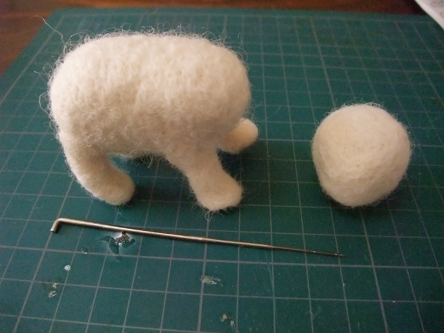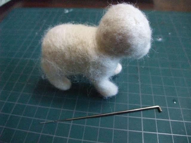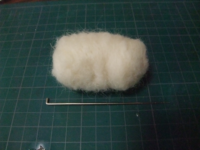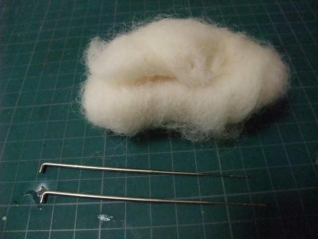 これをフェルティングニードルでチクチクさしながらカタチを整えていきます。コレがホントにフェルトになるの?って感じで最初は、半信半疑にチクチクしてみたのですが思った以上にカタチになってくれます。これなら複雑な形状にも対応できそう。