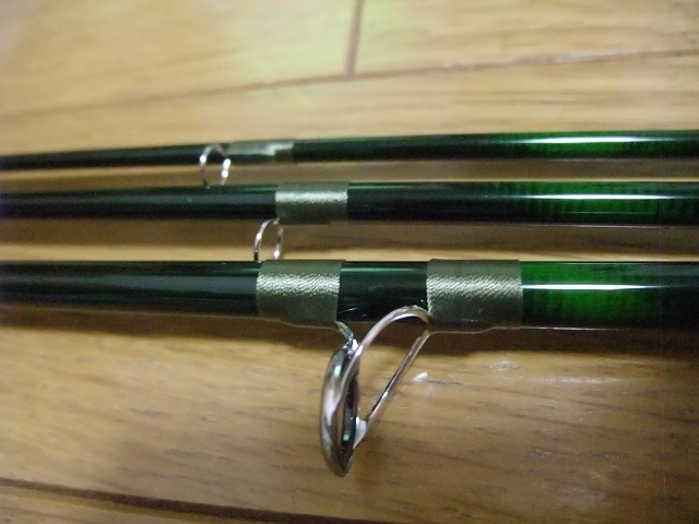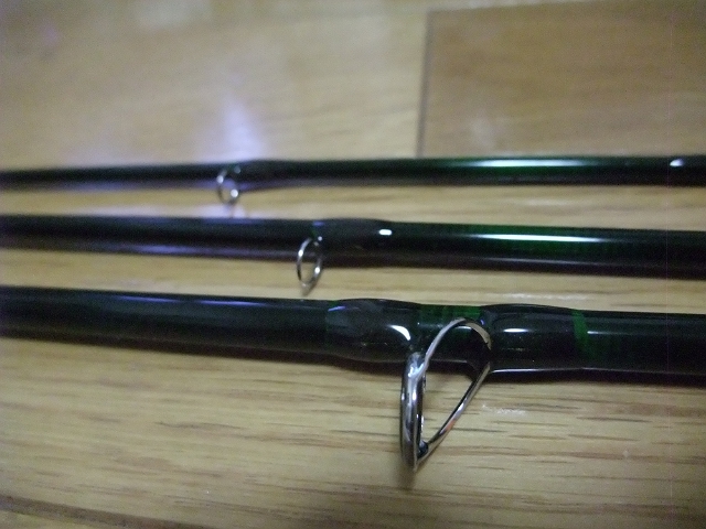 9ftのロッドにガイドを取り付けたのですが、ガイドラップが苦手なうえに最近、目が弱っているようで何度も失敗してはやりなおして、非常にクタビレました。ロッドが長いとガイドが多すぎ。長いと付けにくいし。集中して目を使いすぎて頭が痛くなりました。。。今回は特に飾り巻き無しでシンプルに仕上げてました。目が弱ったコトと暑すぎたコトで凝った巻きが出来ないってこともあります。