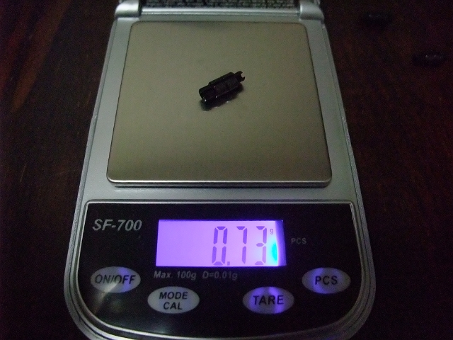 で、パッケージから出して測定してみたところ、ラベルには0.55gと書いてありますが、実測は0.73g。