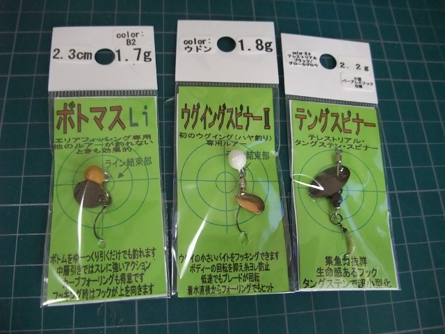 それぞれの能書きはサイトをみてもらうとして、そのひとつのウグイングスピナーⅡは確かに糸はヨレナイはず。これでオイカワやウグイが釣れるのならば多摩川でトライしてみようかな。そうそう、これに関しては自分でもちょっと他の工夫をして作ってみようかと思っています。