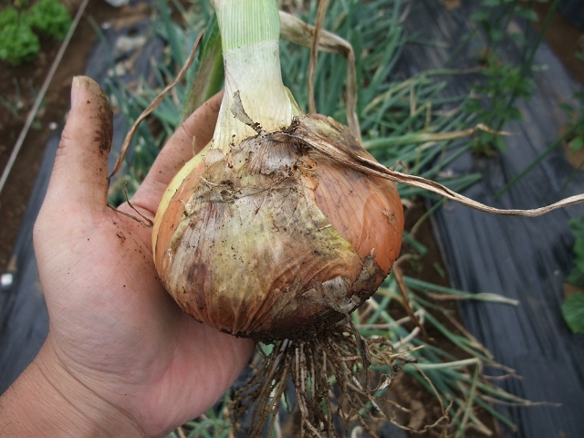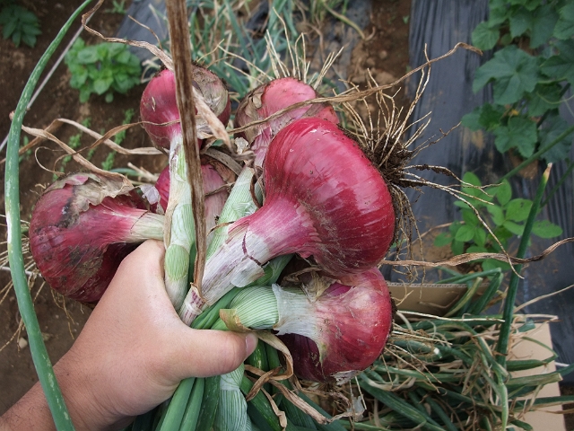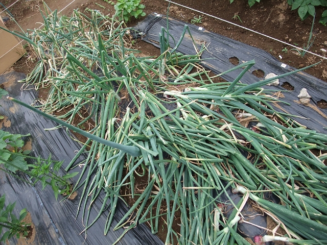 夕飯では今日収穫した紫タマネギをサラダにしていただきましたが、甘さと辛さが一体となって非常に美味しい!!普通のタマネギは、かなりの期間の貯蔵も可能ということで大事に大事にいただいていきます。
