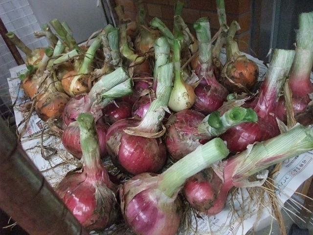 ただ自宅から市民農園までは自転車通いですので、大収穫したタマネギを持って帰ってくるのが大変でした。むりやり自転車にダンボールをくくりつけて2往復でなんとか持ち帰ることができました。いまはベランダを占拠して陰干ししています。