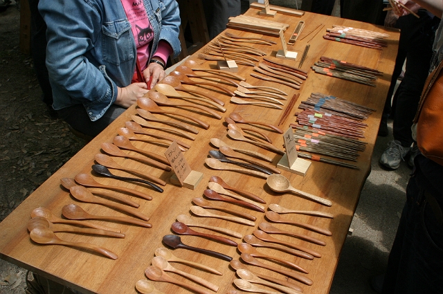 クラフトフェアの名物?ウッドスプーン各種。いろいろ観てたら私もまた作りたくなりました。
