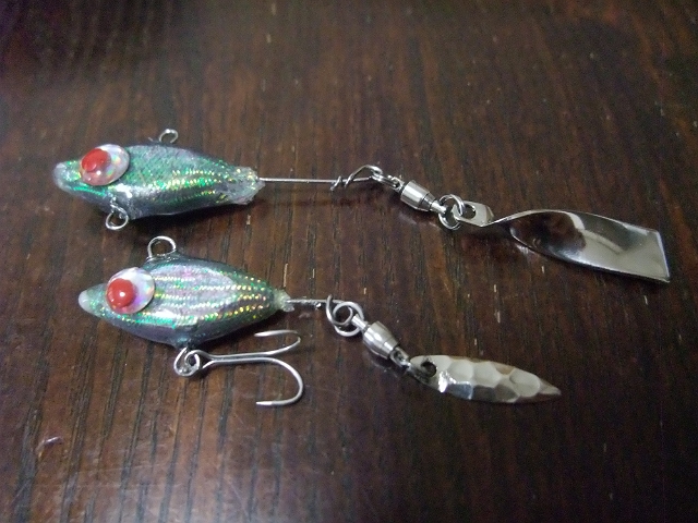 バチ抜けのあとのシーバスですが、7センチくらいのシンキングミノーを新しく作ろうかと思っていたのですが、釣具屋でこんなのを発見。こりゃなかなか面白い!!ってことで、こいつを使ってテイルスピンを作ってみました。