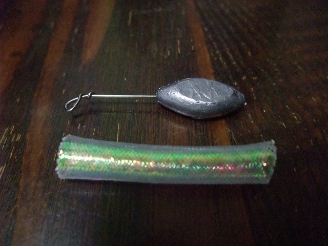 針金でアイを作ってナツメオモリをマイラーチューブにくぐらせてフレックスコートでコーティング。で、こんな感じ。