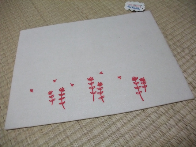 今回はハリス箱化したところにフェルトを貼り付けて、そこに針を掛けられるようにしました。ちなみにフェルトは厚み5mmほど。100均のランチョンマット。本来ならば管釣り用のスプーンウォレットを作ろうかと思って買っておいたものでした。