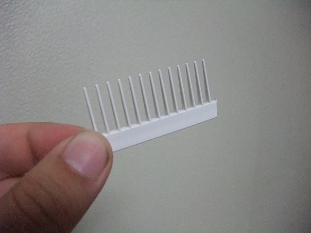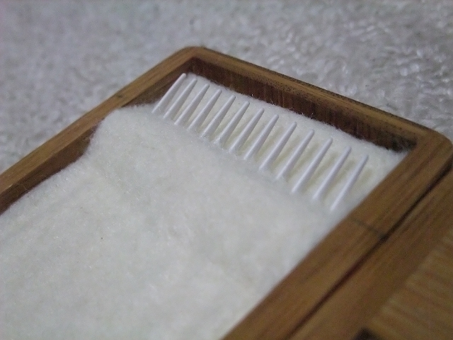 また長さ毎に区切りを入れられるように1000円床屋でもらったクシを使ってみました。わかります?フェルトに穴を開けて飛び出させています。これならばハリスのチワワを傷める心配はなさそうです。