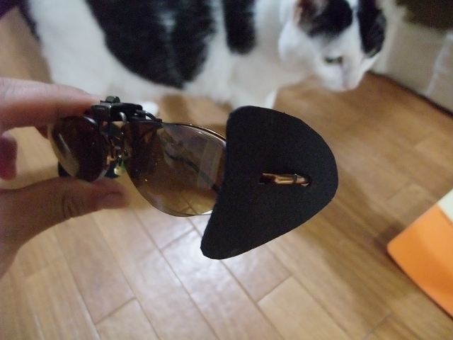 先日、作った(というより削っただけ)の眼鏡掛け偏光レンズ。