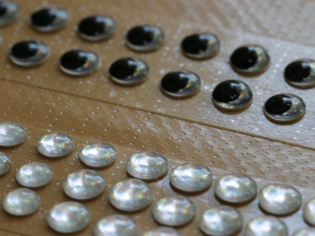 出来上がりを見て、ここまで綺麗にいくとは思っていなかったので自画自賛で感動してます。売っているものより良さそう。シートの種類などでもっといろいろ試せそうです。ちなみに写真の下のものはあとから黒目を入れる予定。あとから黒目を入れたほうが立体的になるのではないかな?と思っていますが、どーでしょう?