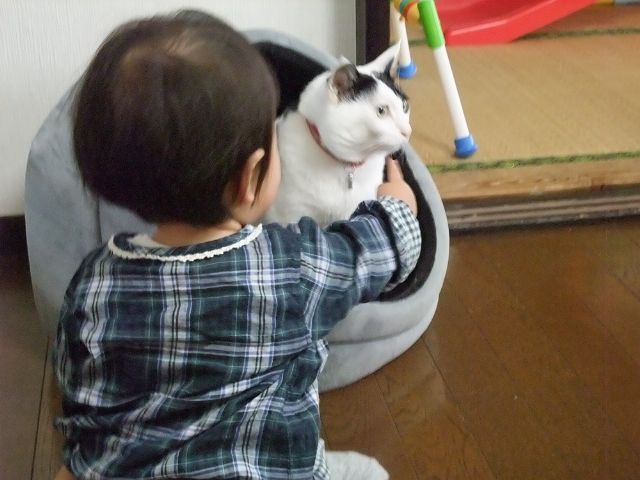 こうたろ君のお家でのタマはいつものとおりのマイペースで初めてのお家でもなーにも気にせずノンビリしていました。やっぱり大物。猫初体験のお子さんにも喜んでいただけたようで良かったです。指でツンツンされてもタマは特に気にせず。さすがタマ。
