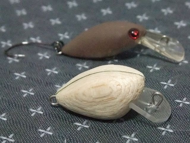 とりあえずサイズとかリップの形状とかウェイトとか、なにも考えずに1個作ってみました。バルサっぽく?ファットでチビにしてみました。久しぶりに作ってみたワリには思ったよりも良い感じ?(奥のが市販品のモカ)そうそう、スイムテストもしていないのにリップを固定してしまいました。ちなみにコーティングもまだです。