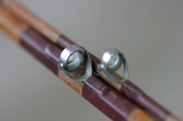 ちなみに写真はバンブーロッド。バッド兼用の2ピースバーションと3ピースバージョン。2ピースのほうはナマズにもいいんじゃないかというようなルアーロッドのような雰囲気。3ピースにするとスロー気味になってフライロッドのような味わい。こーいうロッドは見たことなかった。なるほどなぁ。かなりのオールドロッドで素性がわからなかったけど知りたいものです。
