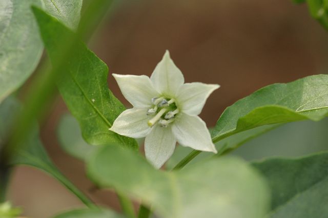 左からミニトマト・ナス・ピーマン。トマトとピーマンは見たことがあったけど、ピーマンは白いかわいい花なんですね。ちなみに鷹の爪も育てているのですが、花はそっくり。やっぱりピーマンと同種類ですね。