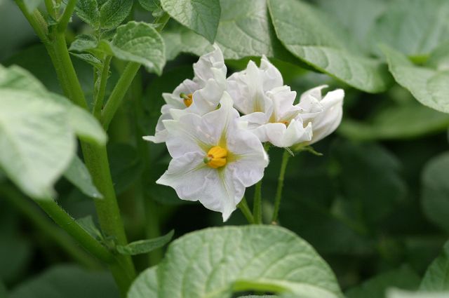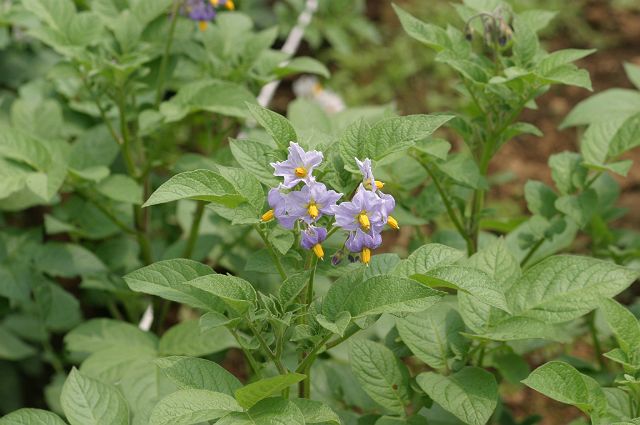 あとウチで育てていませんが、他の方が育てている植物にはこんな花が。ジャガイモですって。色は白と薄紫がありました。種類が違うのでしょう。来年はジャガイモはトライしたいと思っています。
