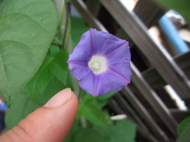 畑とまた別にベランダで育てている朝顔も咲きました。