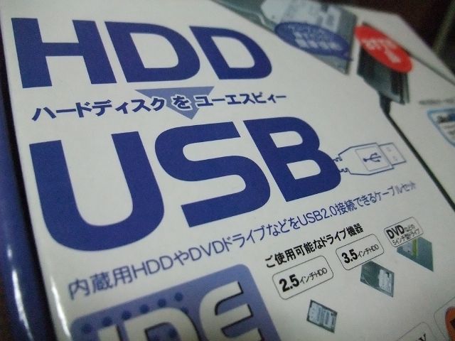 ちなみにハードディスクと実家PCを繋いだのはこれ。いろいろ便利な道具があるものですね。PCに詳しい同僚からの借り物です。こーいうものを知らないでいたら再セットアップをするところでした。