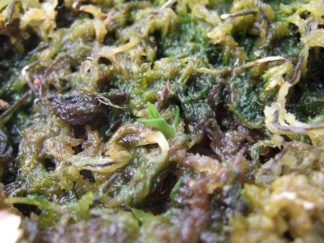 ミズゴケを掘って調べてみたところ6個植えたうちに5個は芽が出てました。1個は残念ながらカビが生えて腐ってしまっていました。発芽率80%ちょっとと考えればよい方かな。7月から9月には花が咲くとのことだけど、咲いてくれるかなぁ。楽しみです。