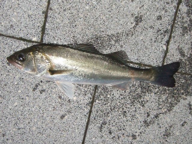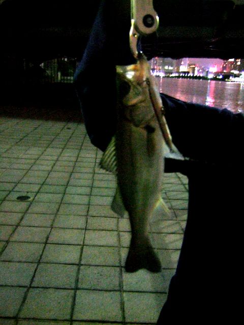 良い感じと思っていたところで、30センチほどのセイゴが釣れました。小さいけれどリベンジ成功。やっぱりにょろにょろでした。
