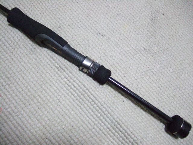 かなり重いロッドなのでソリッドグラスのような気がします。振ってみると胴調子のテロンテロンなロッドです。