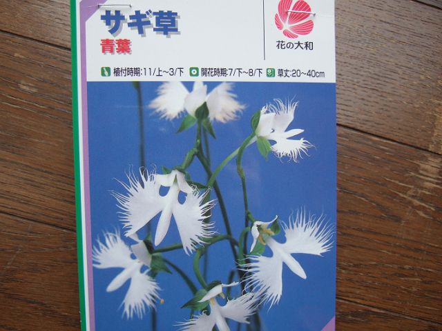 サギソウです。白い鳥が羽ばたいているような可愛い花が咲く植物ですが、いろいろネットで調べてみると、こちらも工夫次第で咲かせることができるようです。ネットで勉強させていただいて早速植付けました。狭いベランダで咲いてくれるかどうか。。。楽しみです。