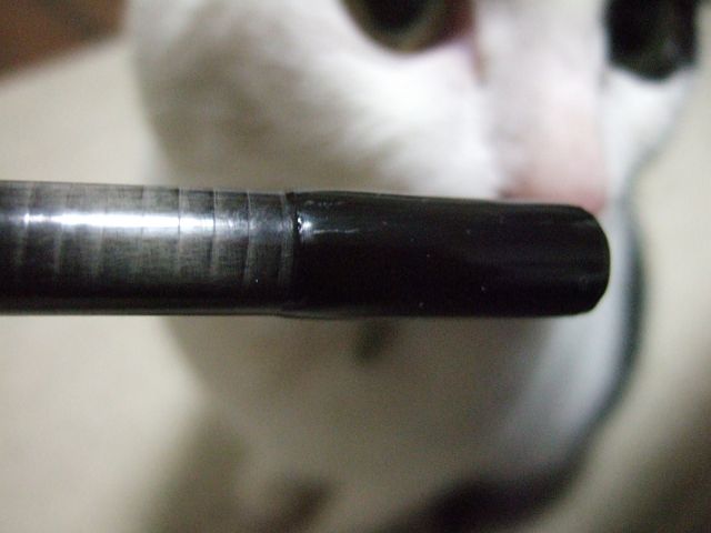 コーティングしたのは先日改造したニコイチ11フィートロッドの切断した端面。その補強です。かなり厚めのブランクなので、補強しなくても平気かも?と思っていましたが、安全をみてやっておきました。切りっ放しだとカッコ悪いしね。